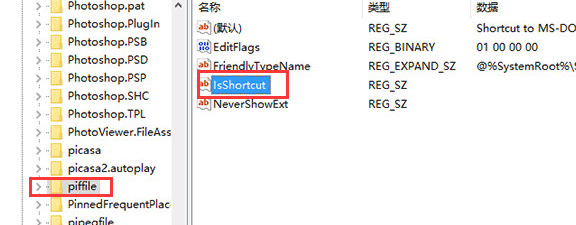4、接著同樣在窗口中依次找到“HKEY_CLASSES_ROOT—piffile”。