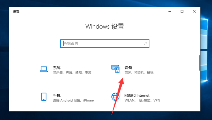 2、在 Windows 設置窗口中,選擇設備(藍牙、打印機、鼠標);
