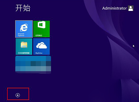 打開metro界面,點擊向下箭頭切換到metro應用窗口,如圖所示:
